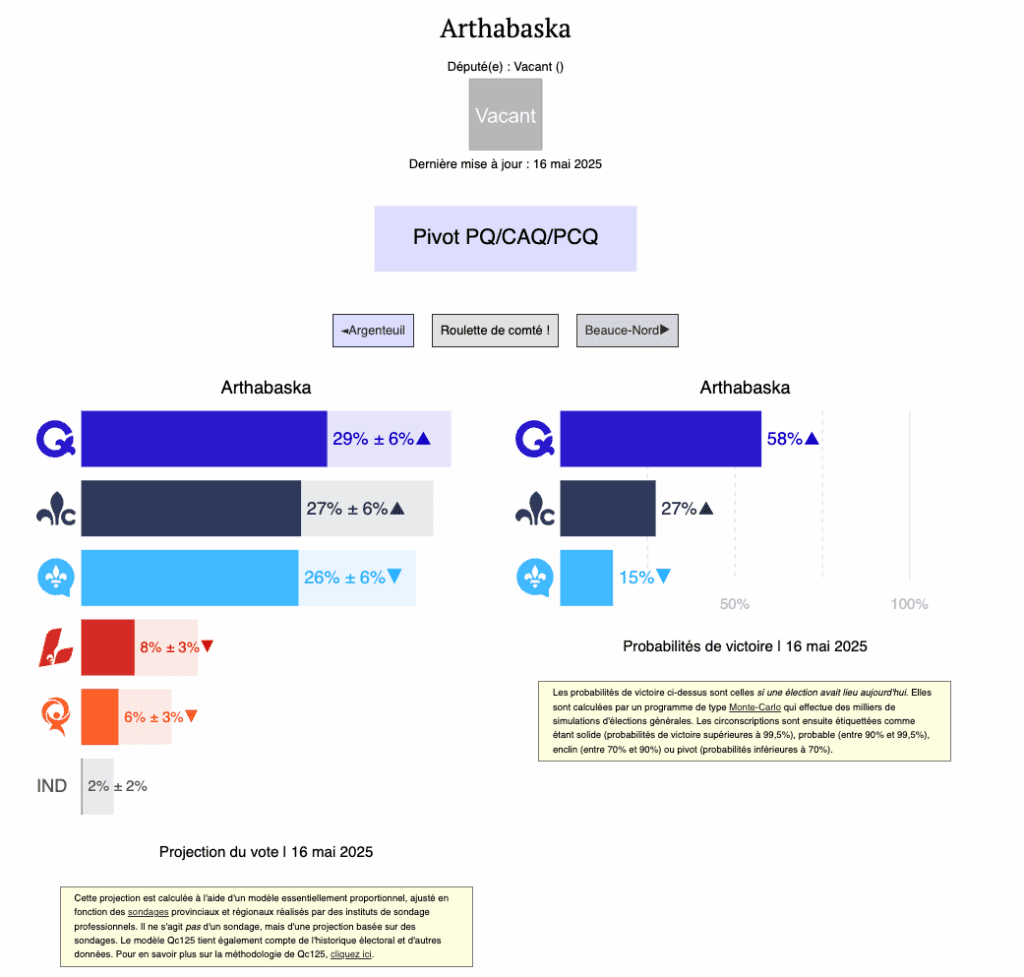 L’élection partielle dans Arthabaska, déclenchée par la démission de l’ex-député caquiste Éric Lefebvre, n’a pas encore été annoncée par le gouvernement. La circonscription, détenue par la CAQ depuis 2012, est convoitée par Éric Duhaime, chef du Parti conservateur du Québec, tandis que le Parti québécois a officiellement désigné Alex Boissonneault, ancien journaliste à Radio-Canada, comme candidat. La course s’annonce serrée, avec le PQ actuellement en tête des sondages. Le gouvernement doit déclencher l’élection d’ici le 18 septembre 2025.