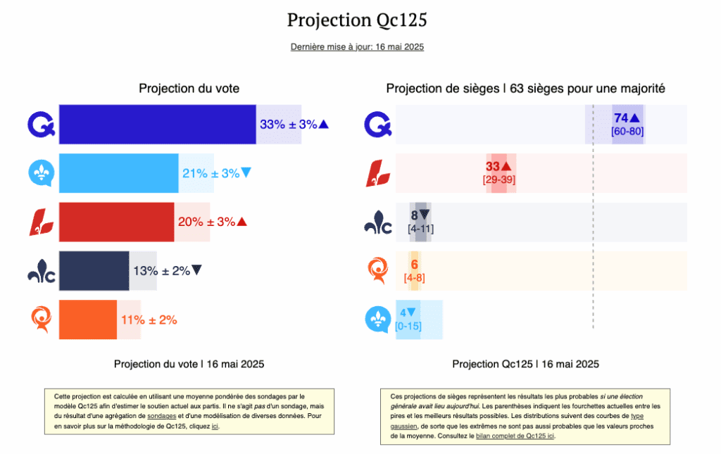 Avec seulement 16 mois avant les élections, la CAQ continue de voir son appui diminuer dans les sondages. Le chef intérimaire du PLQ, Marc Tanguay, a demandé publiquement la démission du premier ministre Legault, tandis que Paul St-Pierre-Plamondon, chef du PQ, lui suggère de déclencher des élections anticipées. Le Parti québécois mène actuellement dans les sondages avec 33 % des intentions de vote, suivi de la CAQ à 21 % et du PLQ à 20 %.