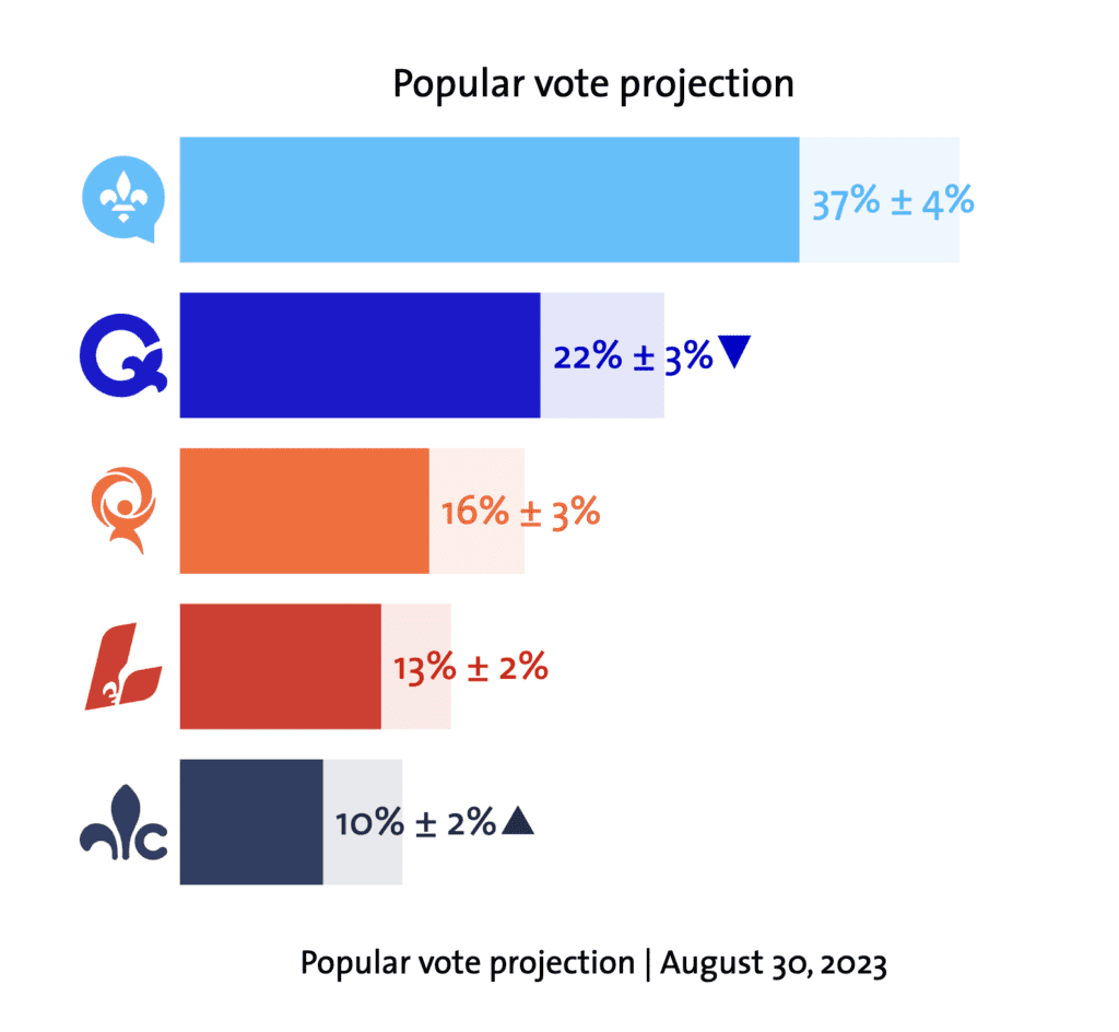 With CAQ MNA Joëlle Boutin’s resignation, the by-election in the riding of Jean-Talon (Quebec City) on October 2 will be a test for both the QLP and the CAQ following Premier Legault’s increased dissatisfaction in the region since his decision to drop plans to build an automobile tunnel under the St. Lawrence River between Quebec City and Lévis. Prior to Boutin’s election, the riding had always been Liberal, but a poll from Leger is currently pointing towards a close fight between the CAQ and the PQ candidates.