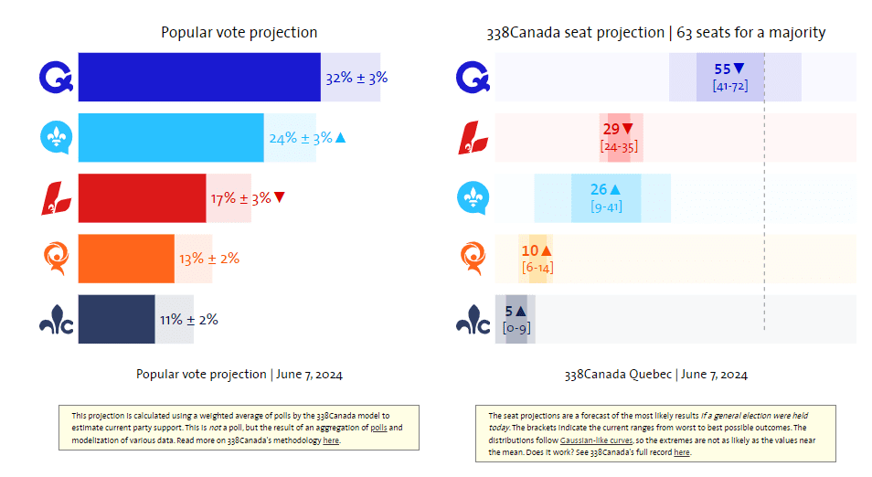 Meanwhile, the Parti Libéral du Québec’s leadership election will be held in spring 2025, with Interim Leader Marc Tanguay currently the favourite to become the next party leader, with 30 per cent support, significantly higher than former Montreal mayor Denis Coderre, currently at 12 per cent. The next Québec provincial general election is scheduled for October 5, 2026, leaving a lot of room for change.