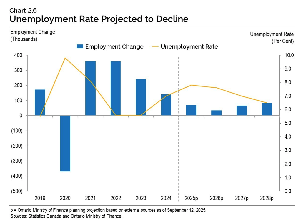 Important context leading into this FES is that Ontario is the first province that is facing significant fallout caused by the ongoing trade and tariff battle with the United States. Due to the provinces manufacturing sector being disproportionately exposed to these tariffs, unlike other sectors and jurisdictions in the country, we are seeing the effects on the economy already. Job growth has flattened and outyear predictions are much lower than previously estimated.