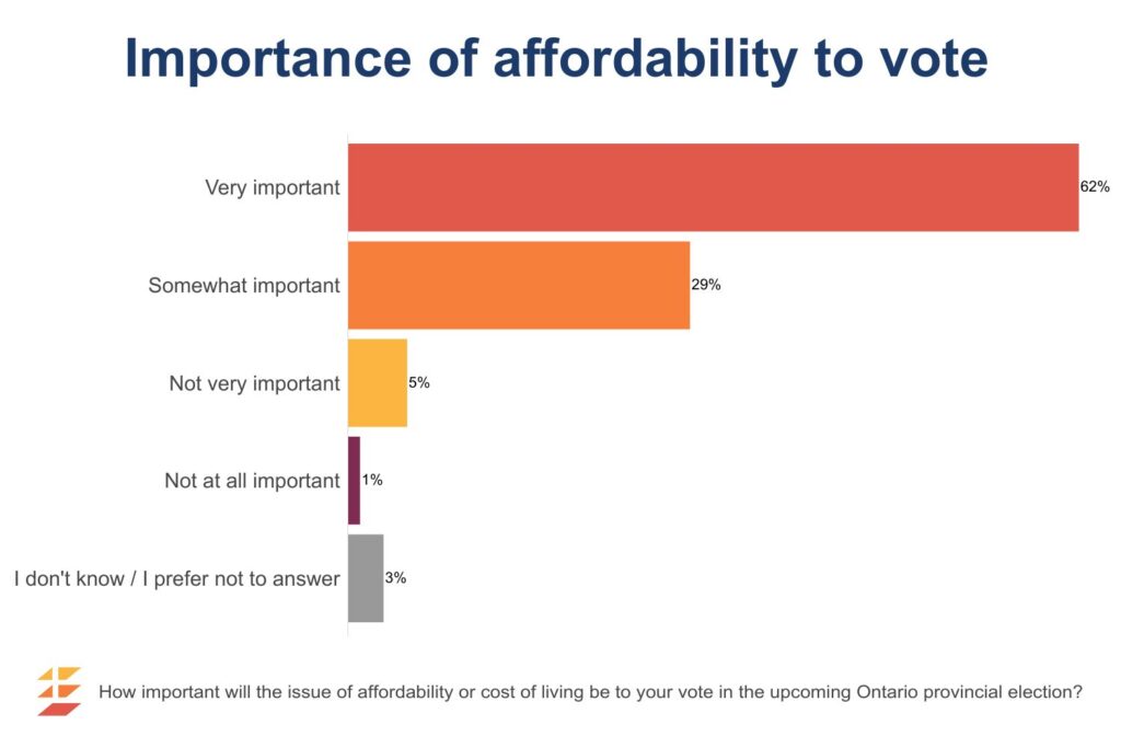 This survey was sponsored by Earnscliffe Strategies and conducted by Leger using a random sampling of panelists from Leger’s proprietary online panel. The survey was conducted with 1,000 individuals from Ontario between May 13 to 15, 2022. The data was weighted to be reflective of the Ontario population by age, region, sex, education and children under 18 in the household based on Census data. Since this survey was conducted using an online panel, no margin of error may be calculated.