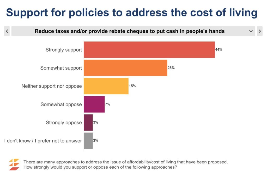 We tested the level of support for each of four, somewhat contrasting, policy approaches to addressing the issue of affordability and cost of living: