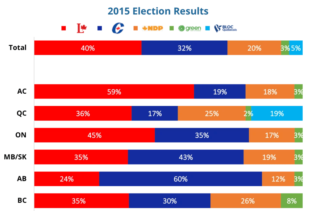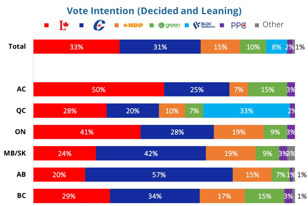 Like virtually all the other publicly available polls, our own Earnscliffe nation-wide research shows the Liberals and Conservatives locked in a virtual dead heat. Moreover, regional results compared to the actual vote in 2015 similarly suggest that neither major party has a clear pathway to majority government.